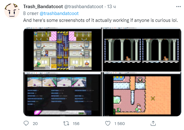 Пользователь Twitter TrashBandatcoot разместил серию сообщений об утечке, включая скриншоты эмуляторов, а также дал ссылку на другой аккаунт, где появились видеозаписи. Но Nintendo кадры удалила.