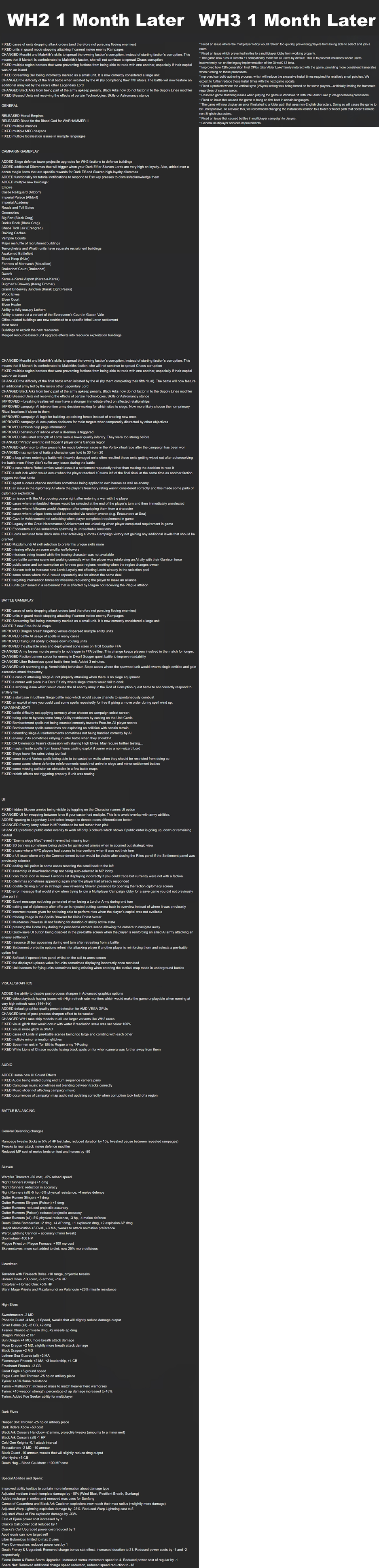 На форуме Reddit поклонники раскритиковали авторов Total War Warhammer 3. Пользователь pragmatic_saltmaker опубликовал изображение, на котором сравнил количество изменений в TWW 2 и TWW 3 за 1 месяц. Очевидно, предыдущая игра в серии «богаче» на исправления и улучшения.