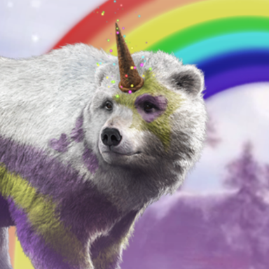 Участникам полагается необычная награда, это радужный медведь-единорог.