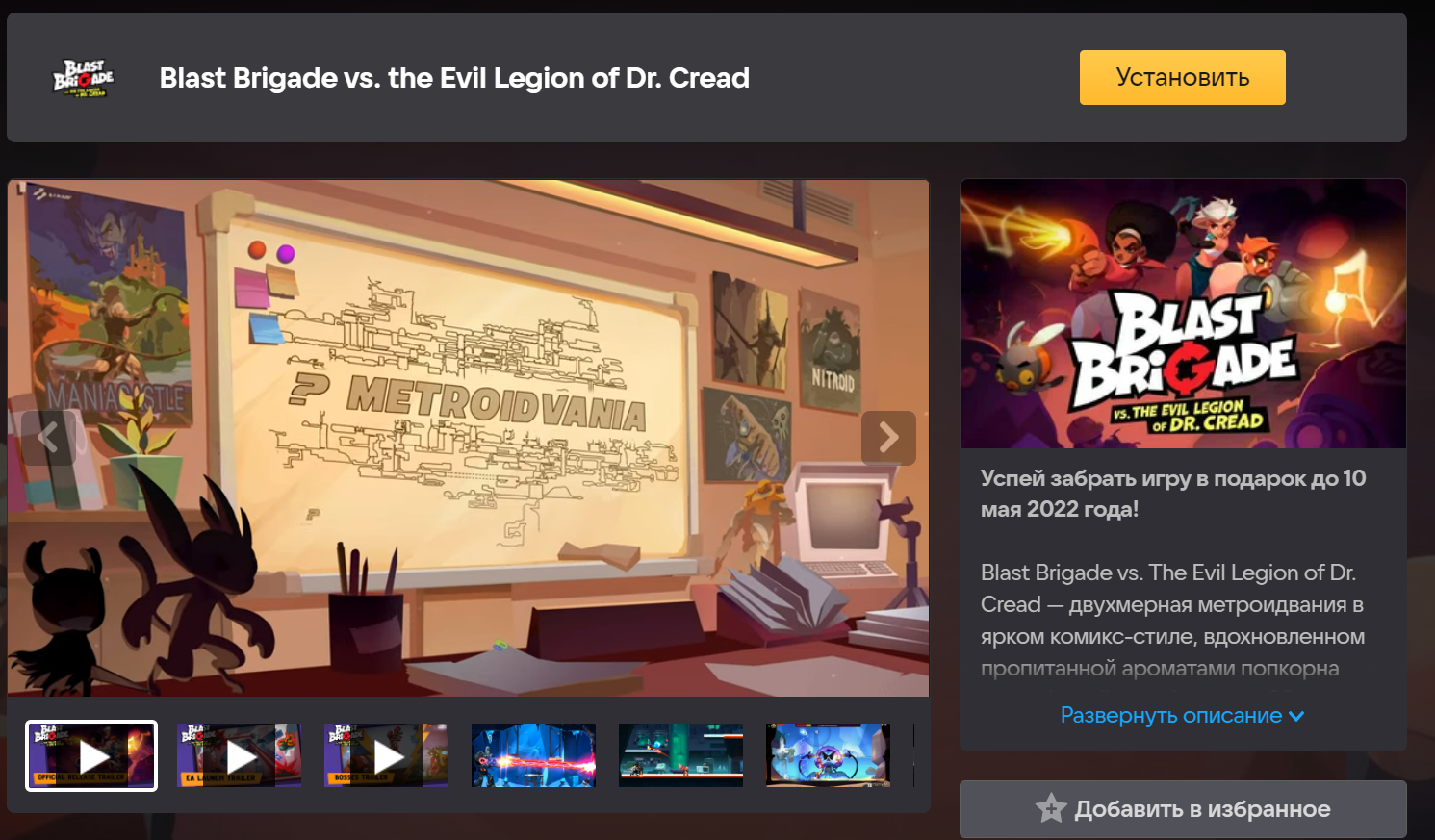 До 10 мая Blast Brigade vs. The Evil Legion of Dr. Cread можно получить бесплатно по ссылке (или тут).