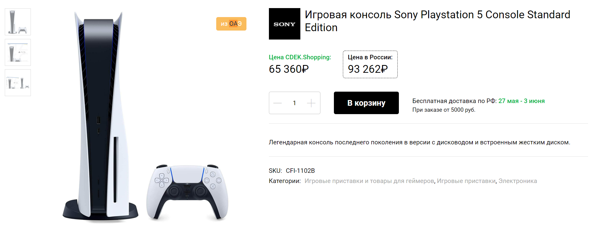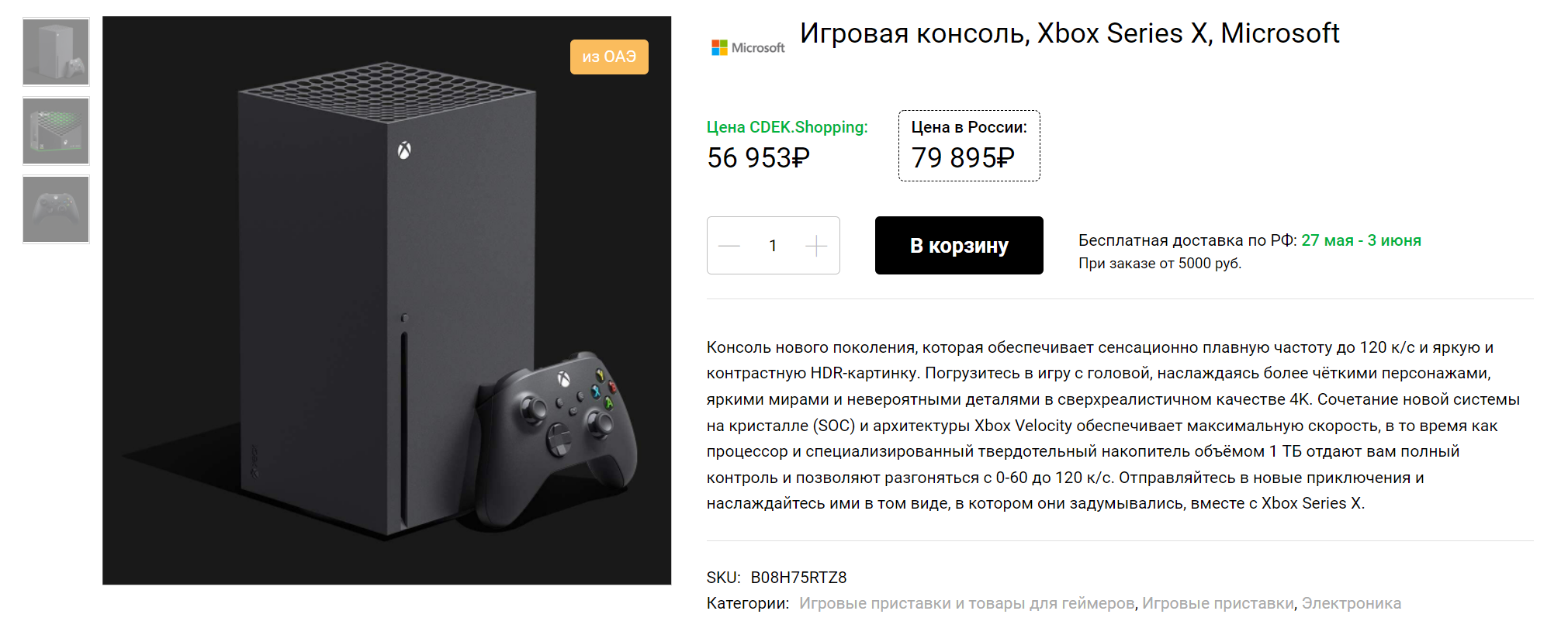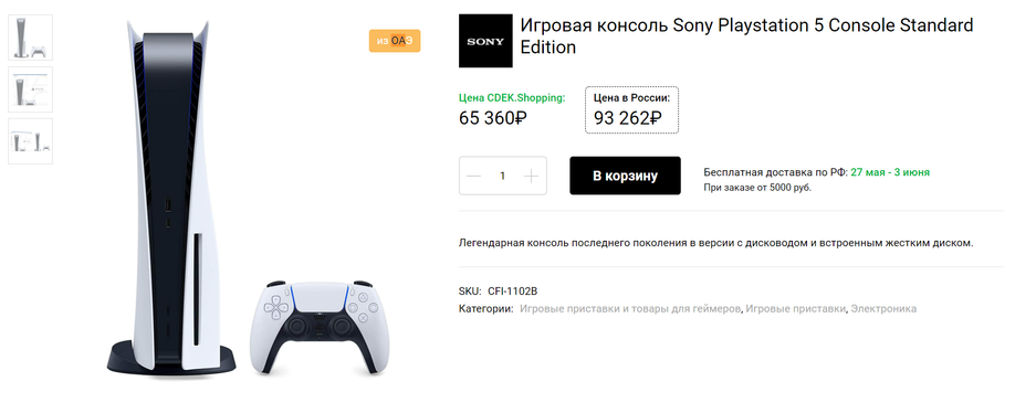 Логистическая компания «СДЭК» предлагает пользователям платформы cdek.shopping заказать консоли нового поколения PlayStation 5 и Xbox Series в Россию. При этом акцентируют внимание на том, что цена ниже, чем у отечественных предпринимателей.