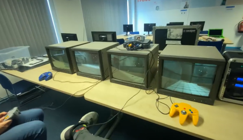 Среди прочего, предлагали посмотреть на уникальную версию GoldenEye 007 для 4 экранов и 4 игроков. Такая GoldenEye 007 работает на оригинальном оборудовании.