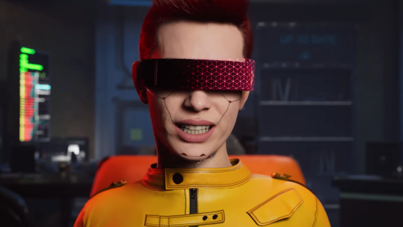 Есть сцены с интерфейсом Cyberpunk 2077: