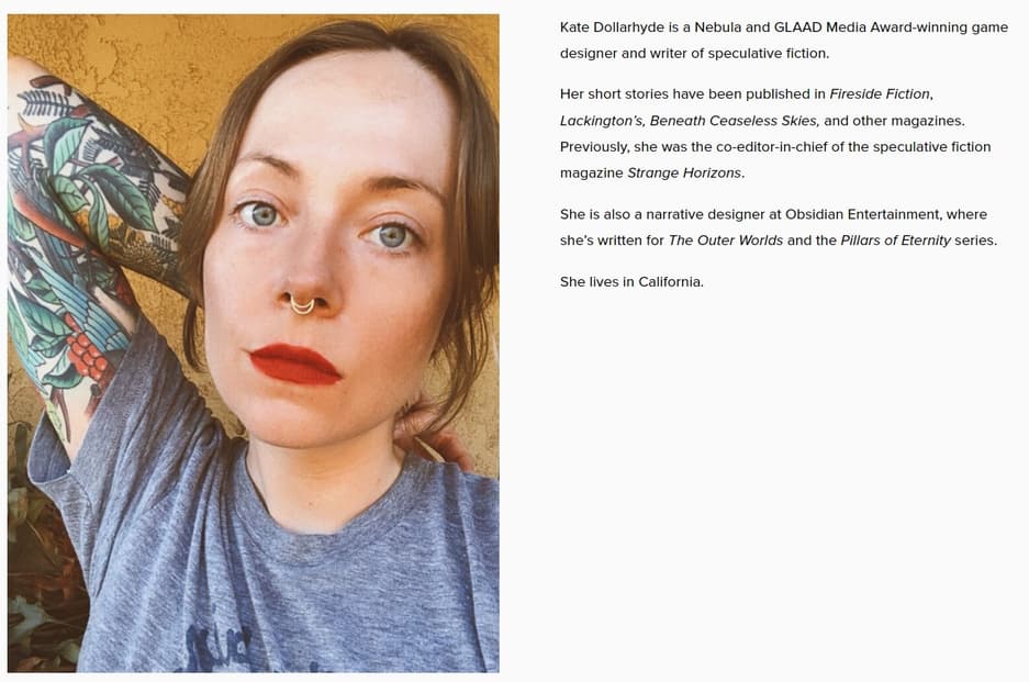 «После пяти фантастических лет работы в Obsidian я покидаю студию, чтобы заняться личным творчеством! Это моя последняя неделя с командой. Я очень благодарна многим блестящим дизайнерам, у которых мне посчастливилось учиться, и дорогим друзьям, которых я здесь встретила. Спасибо вам всем».
