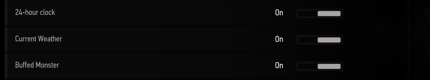 Помимо этого, теперь есть настройка формата времени (12 или 24 ч.) и включение/отключение индикатора погоды и усиленных монстров. По словам Tinnaib, модификация поддерживает все официальные локализации.