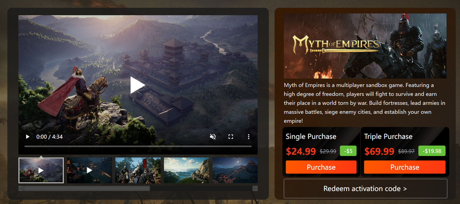 Одно время Myth of Empires была хитом в Steam, но разработчиков обвинили в краже исходников и игру удалили из сервиса. Благодаря VK Play в России можно приобрести копию удобным способом