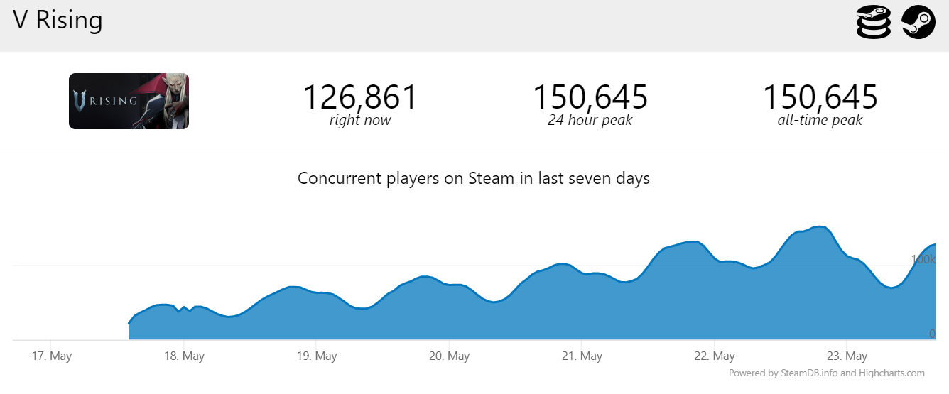 17 мая выживалку V Rising запустили в раннем доступе Steam. Постепенно платный проект набирает обороты.