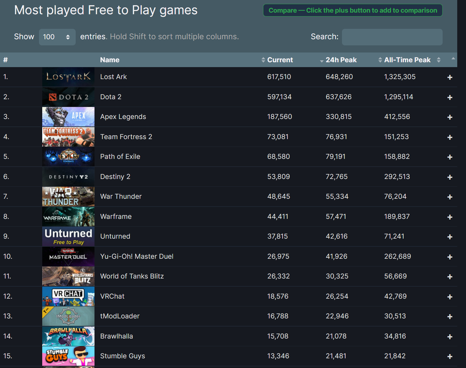 Пиковый онлайн в Steam достиг отметки в 150 645 игроков, что превышает суточный рекорд GTA 5 в 101 604, а также значительную часть условно-бесплатных проектов, что представлены в Steam.
