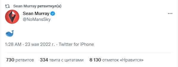 Шон Мюррей в очередной раз опубликовал в Твиттере сообщение, которое состоит из одного смайлика – это кит. Пользователи начали строить догадки.