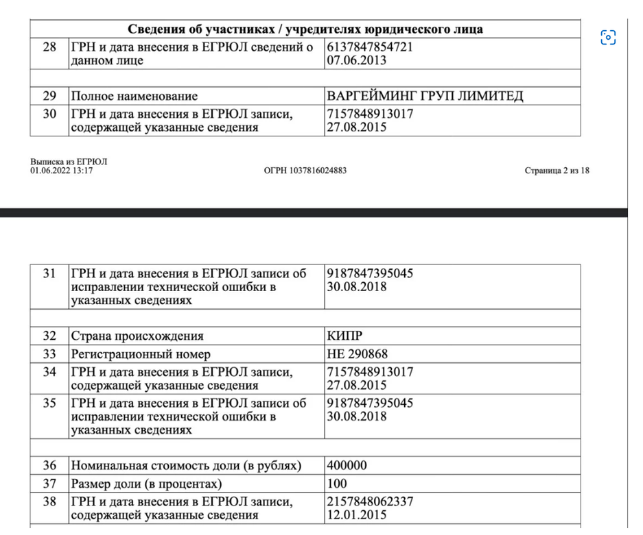 Они приводят выписку из реестра юридических лиц об ООО «Леста». Как можно заметить, 100% принадлежит Wargaming.