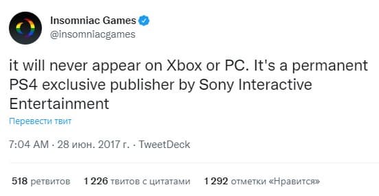 «Она никогда не появится на Xbox или ПК. Это постоянный эксклюзив PS4 от издательства Sony Interactive Entertainment».