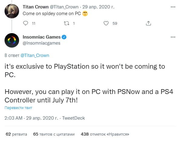 Но фанаты вспомнили обещания студии 2017 и 2020 годов. Разработчики дважды обещали, что Spider-Man – это эксклюзив PlayStation, который никогда не появится на ПК. Похоже, у этих обещаний вышел срок годности.