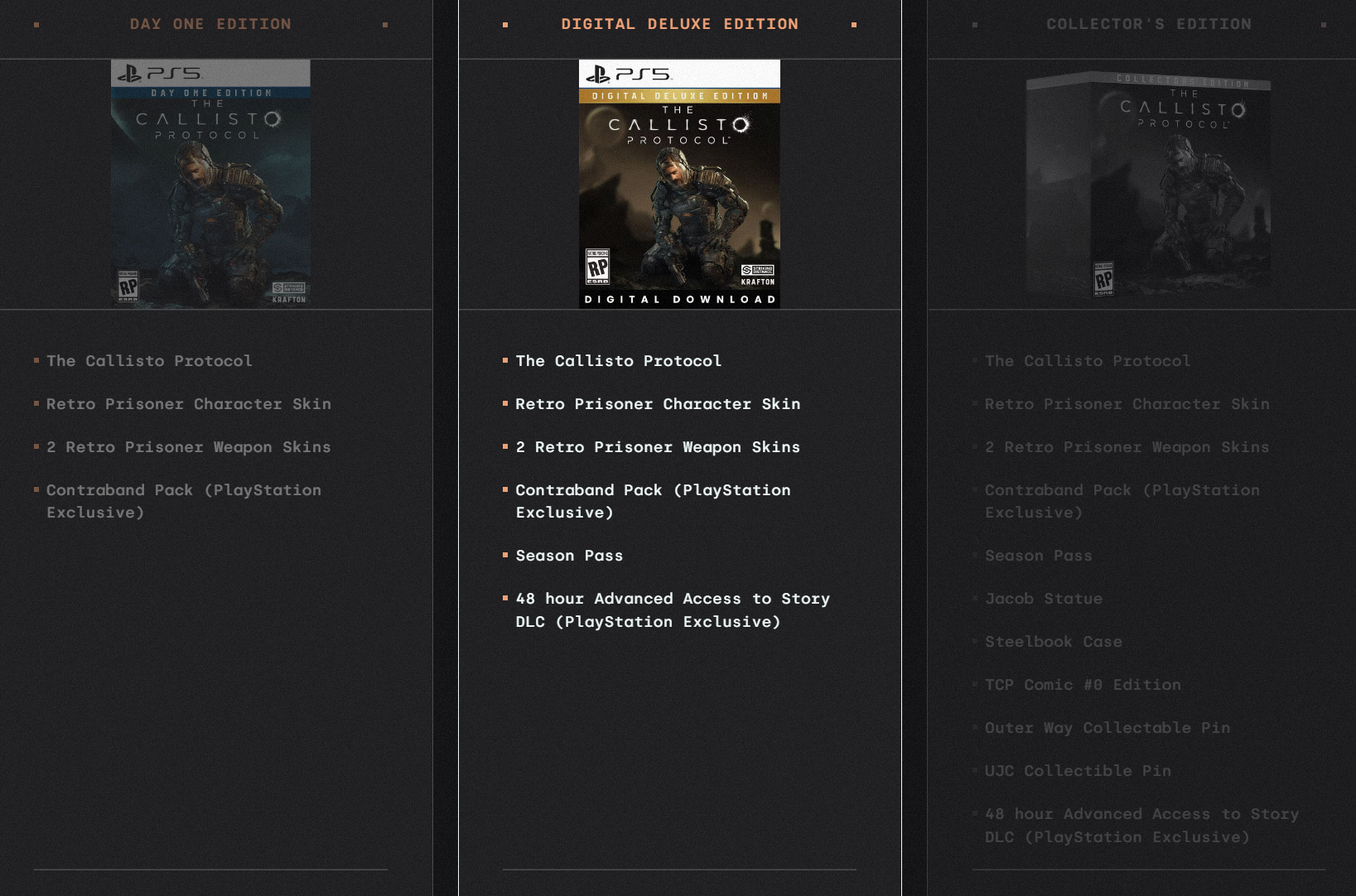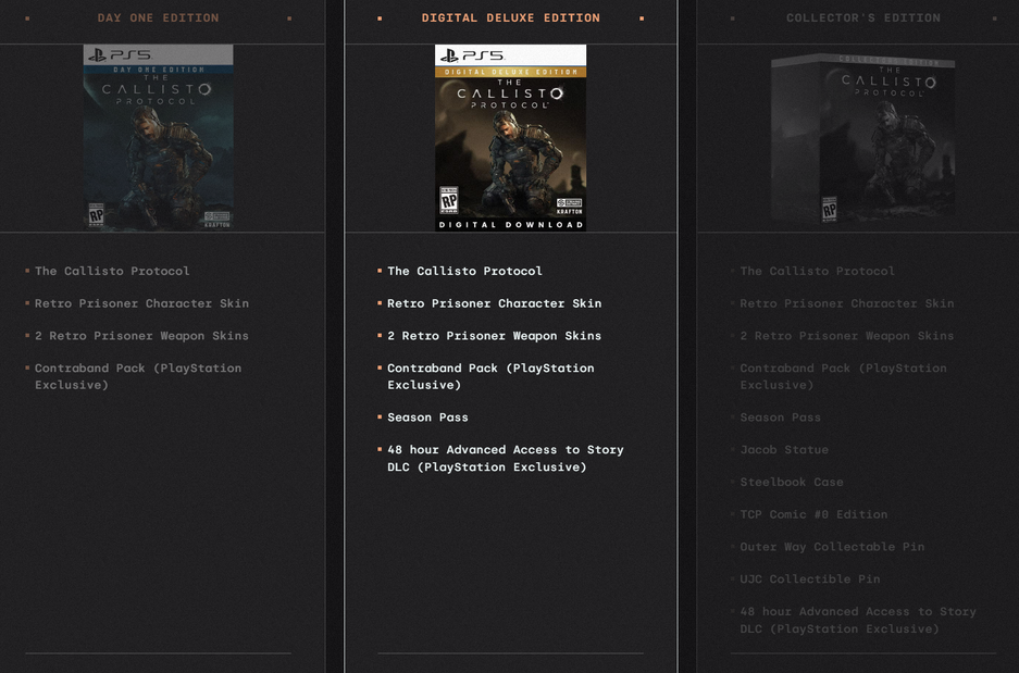 На сайте разработчиков можно ознакомиться с содержанием изданий хоррора The Callisto Protocol.