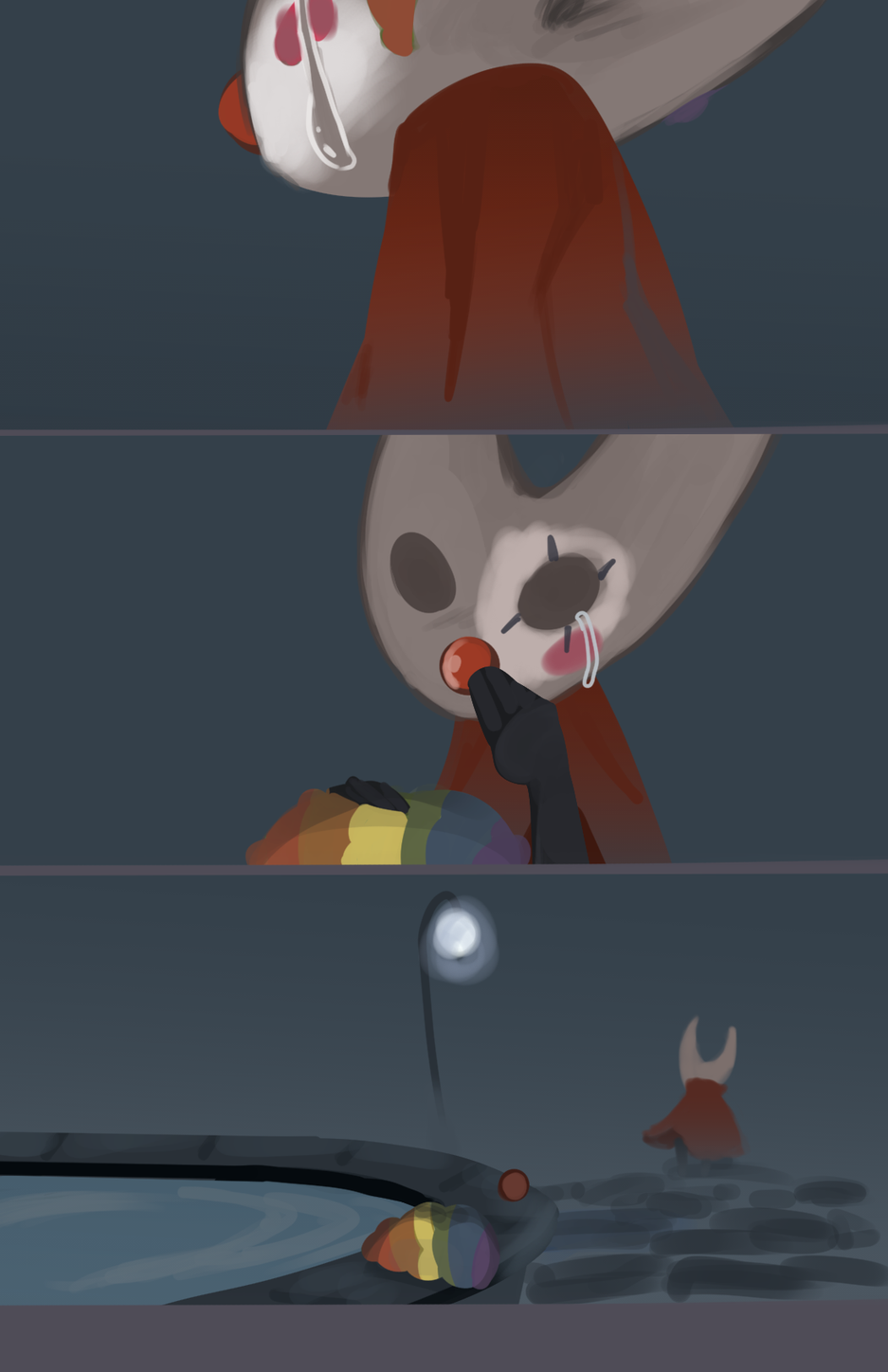 Поскольку «ожидание презентации» завершилось и сменилось на «ожидание даты релиз», то эти клоуны начали прощаться со своим амплуа. В результате стали публиковать прощальные арты, на которых персонаж скидывает или избавляется от клоунского наряда.