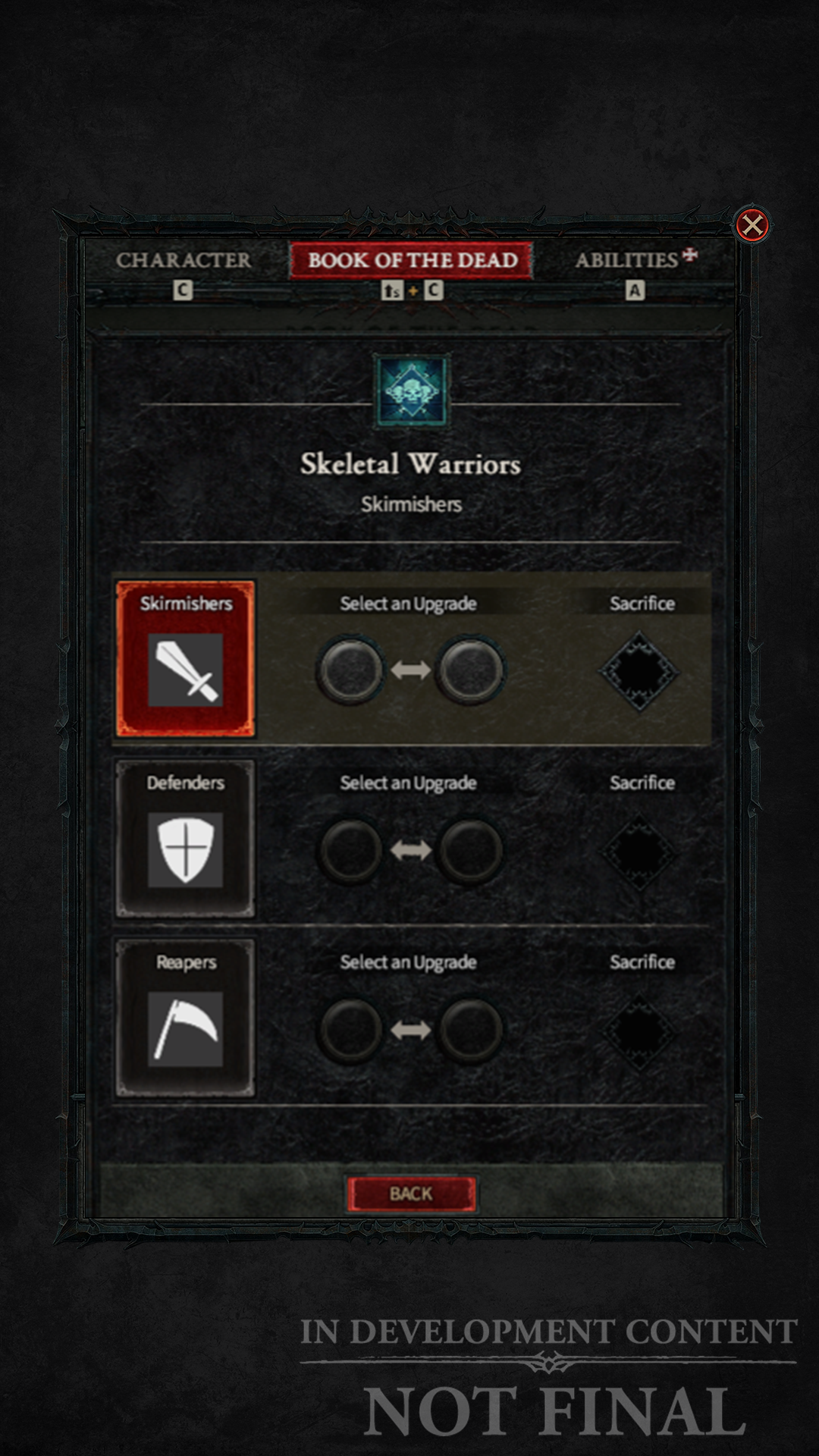«Книга мёртвых» будет находиться на панели и позволяет настроить армию нежити, с умножением количества вариантов после повышения уровней. Кроме этого, прислужниками можно пожертвовать ради бонусов для героя.