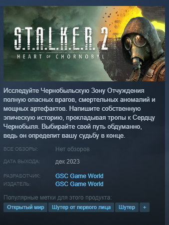 На текущий момент релиз S.T.A.L.K.E.R. 2: Heart of Chornobyl, если верить записи в Steam, запланирован на декабрь 2023 года. Не исключено, что это просто «заглушка». Предзаказы продолжают собирать.