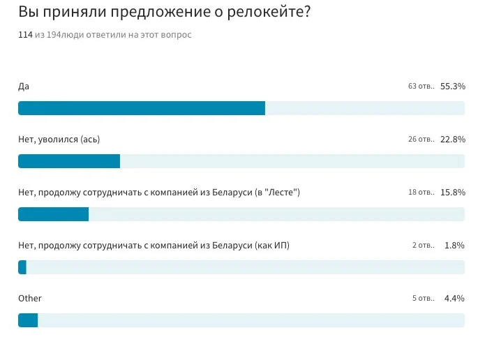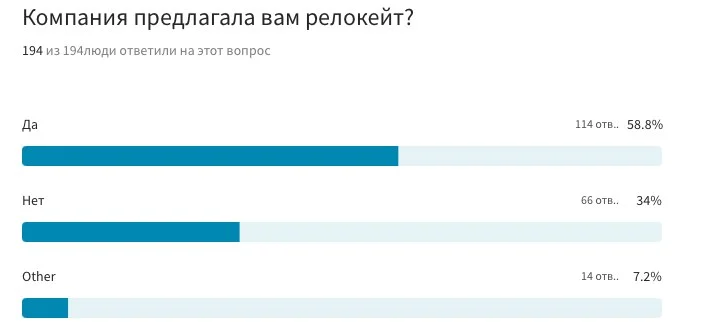 На вопрос о том, предложила ли Warming релокацию (релокейт) утвердительно ответили почти 60% участников опроса.