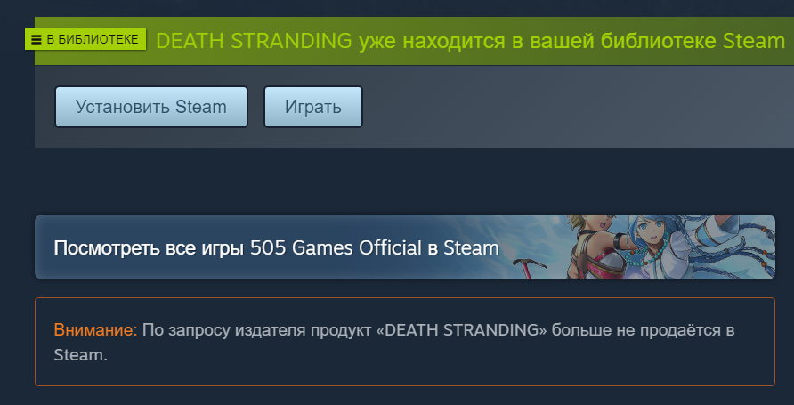 Для сравнения, страница Death Stranding в Steam, если открыть её в браузере:
