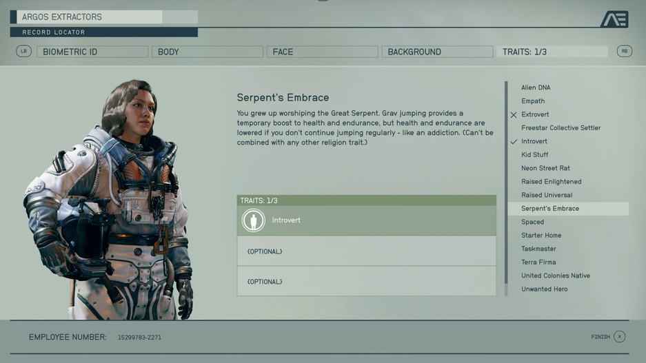 Игрок может на старте выбрать до трёх стартовых черт. Есть также «Интроверт» (больше выносливости, если у нас нет компаньона), или «Детские штучки», позволяющие посетить дом родителей (но автоматически им отправляется 10% дохода). С «Неоновой уличной крысой» можно получить особый диалог и награды на планете Неон.