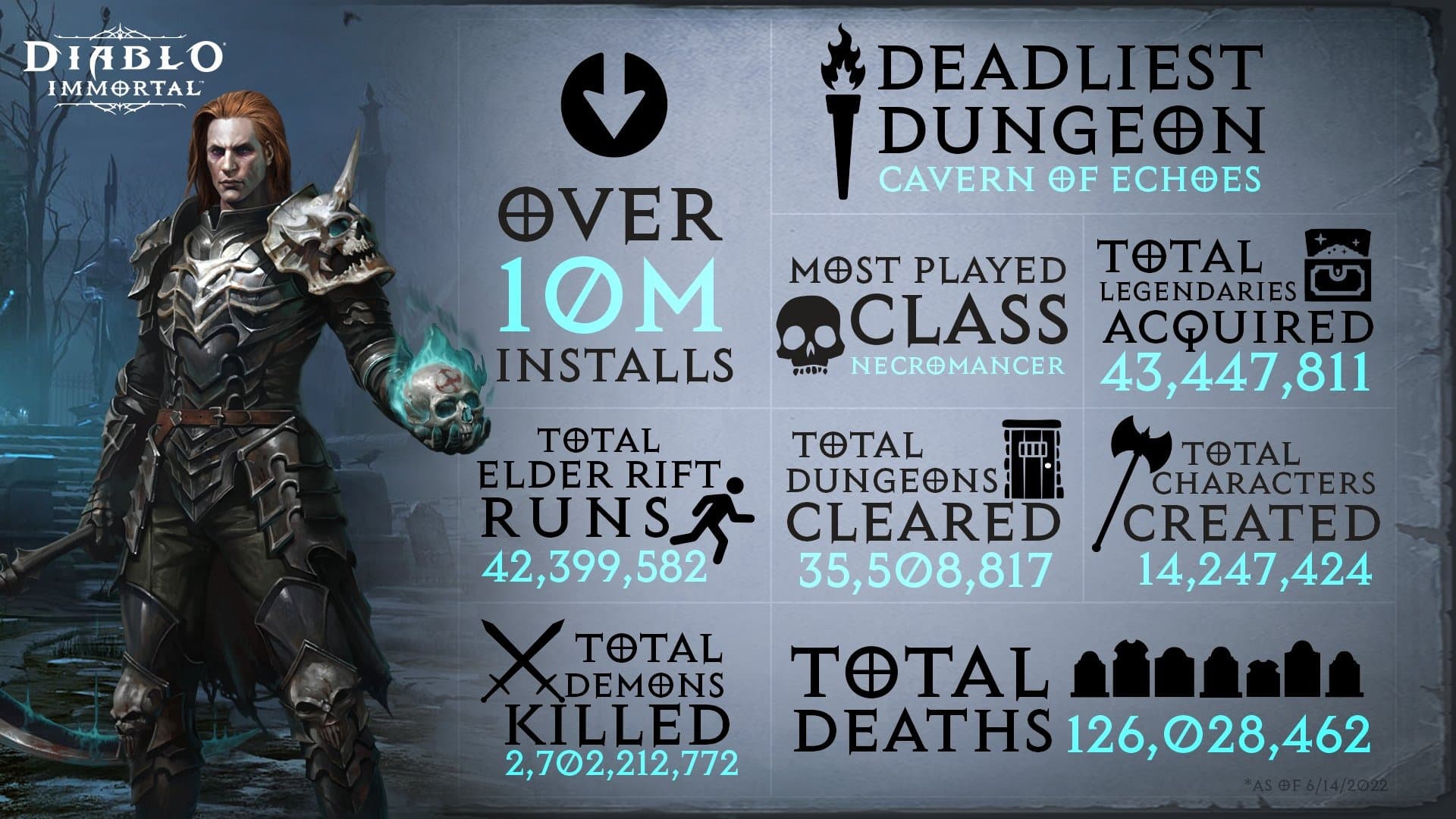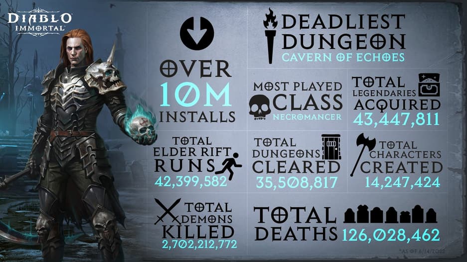 Разработчики Diablo Immortal поделились статистическими данными, включая обновленное количество загрузок и статистику достижений игроков.