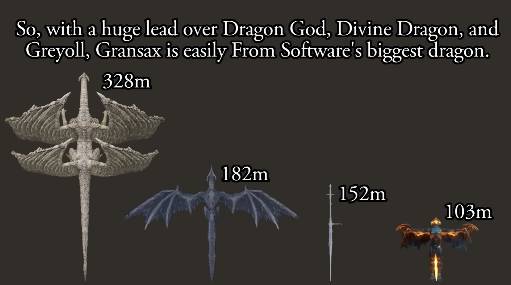 Несмотря на правки, рекордсменом остался Gransax с ~328 м. из Elden Ring, т.е. он почти в 2 раза крупнее, чем дракон из Demon's Souls.