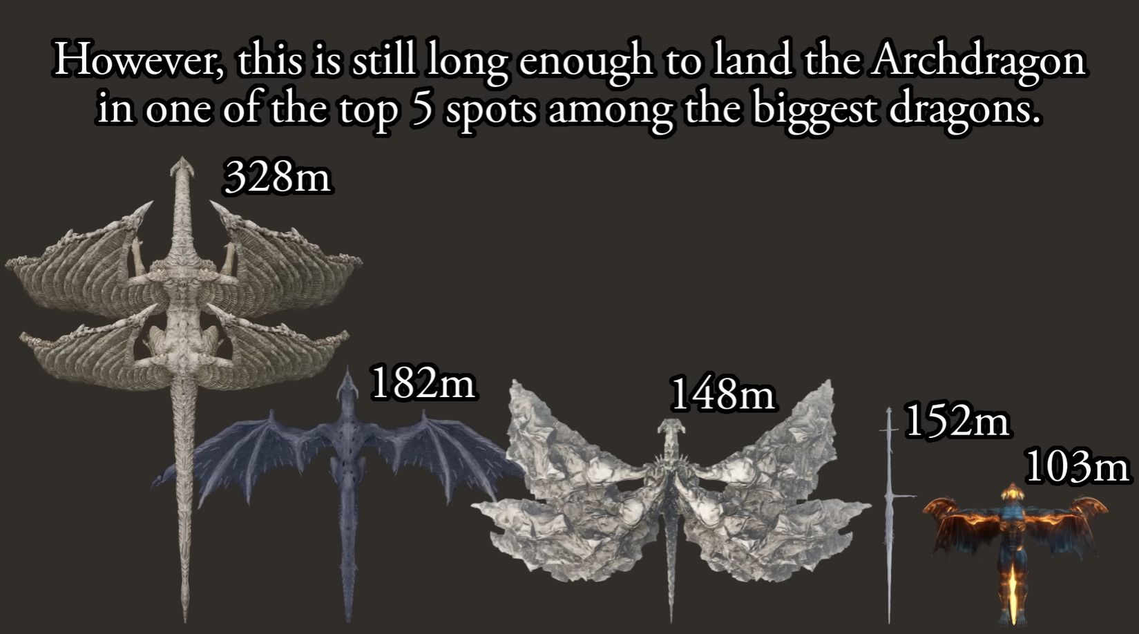 Датамайнерша Zullie the Witch решила измерить драконов в разных играх FromSoftware, чтобы определить самого крупного. Даже такого опытного специалиста разработчикам всё же удалось немного «обмануть». Исследовательница заметила, что 2 модели Archdragon различаются. В связи с этим, она решила скорректировать рейтинг драконов.