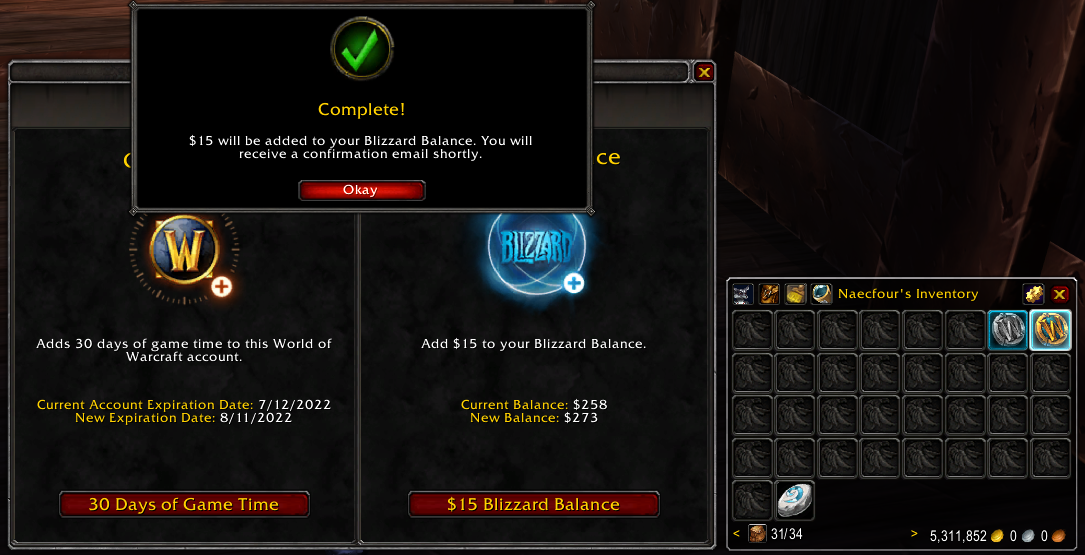 World of Warcraft позволяет закупать за внутриигровую валюту жетоны для продления подписки, а затем обменивать их на реальные деньги. Игрок решил конвертировать таким образом 600 миллионов золотых в 50 тысяч долларов на балансе.
