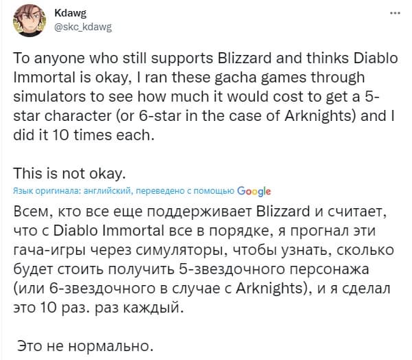 Игрок Kdawg не стал спорить с пользователями, которые критикуют или оправдывают монетизацию в Diablo Immortal, а показал, сколько реальных денег необходимо потратить в новинке Blizzard и четырёх других популярных мобильных играх.