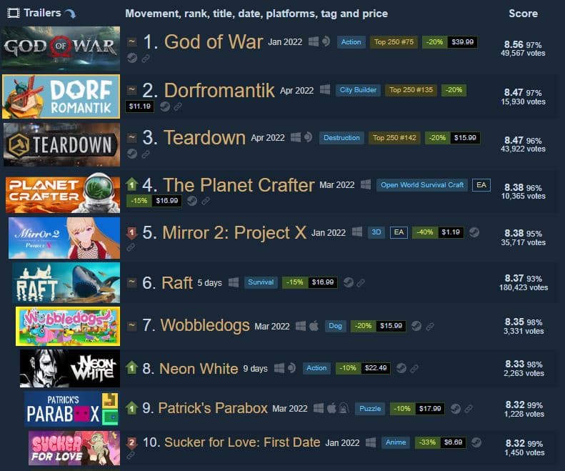 Однако она все же уступила симулятору дебошира Teardown, выживачу Raft и слэшеру про приключения отца с сыном God of War