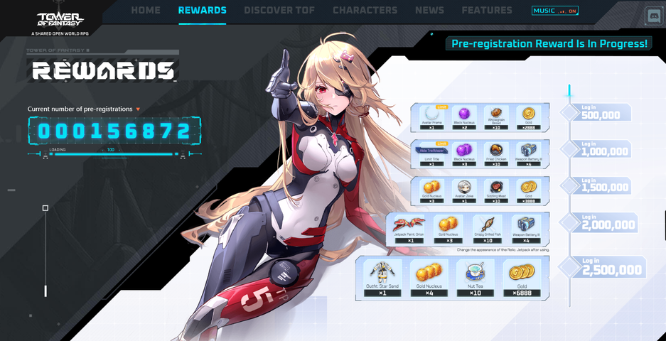 На сайте Tower of Fantasy ведут подсчёт предрегистраций, уже свыше 150 тысяч.