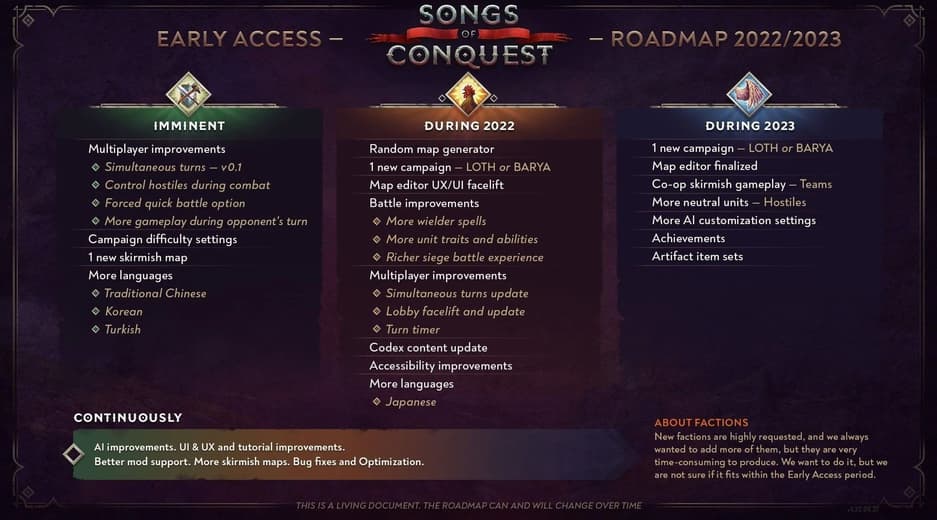 Lavapotion понимает, что больше всего фанаты хотят новых играбельных фракций, но на их создание потребуется больше времени. Возможно, они появятся позже, чем игра выйдет в версии 1.0, которую стоит ждать ориентировочно в мае 2023 года.