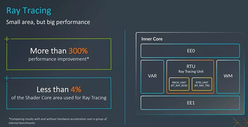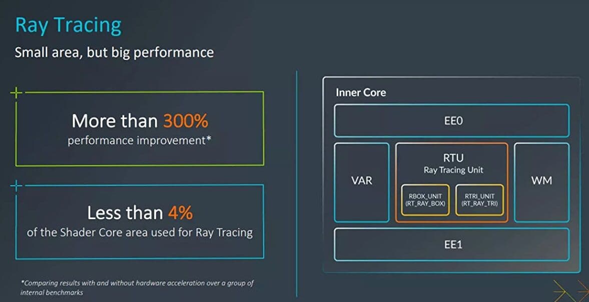 «Проблема в том, что технологии трассировки лучей могут потреблять значительную мощность, энергию и площадь в мобильной системе на кристалле (SoC). Но трассировка лучей на Immortalis-G715 использует всего 4% площади шейдерного ядра, обеспечивая при этом прирост производительности более чем на 300% за счет аппаратного ускорения».