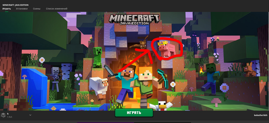 Игроки в Minecraft заметили, что открывающее изображение изменилось. Стоящая на фоне парочки персонажей свинья получила золотую корону, которая должна быть знакома зрителям Technoblade.