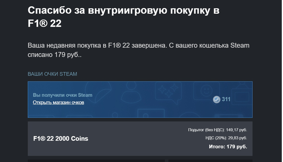 В F1 22 проходят платежи и можно свободно приобрести внутриигровую валюту в российском Steam. Купленную валюту не изымают.