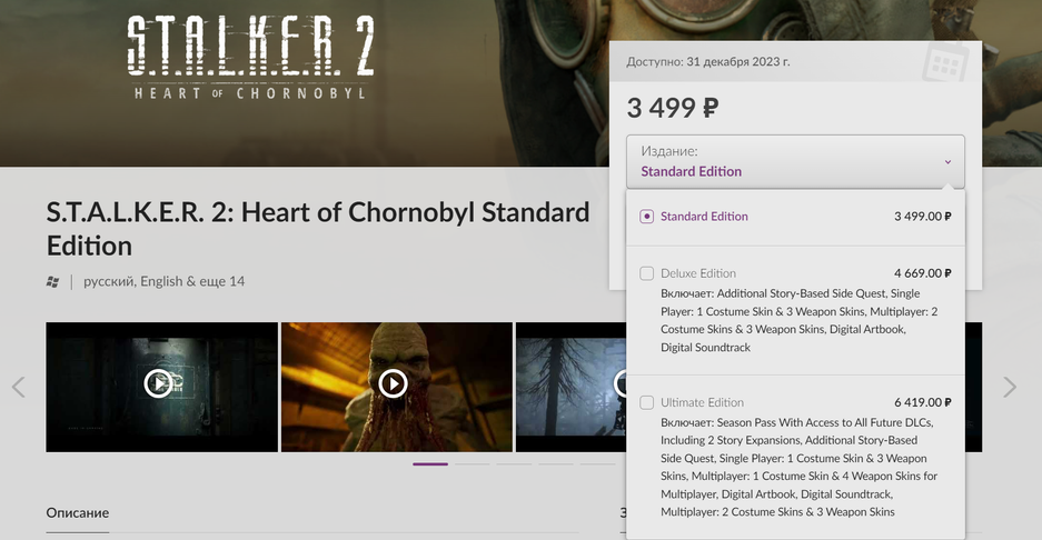В GOG игра подорожала. Ранее в Steam стандартная версия стоила 2499, а в GOG уже 3499 рублей.