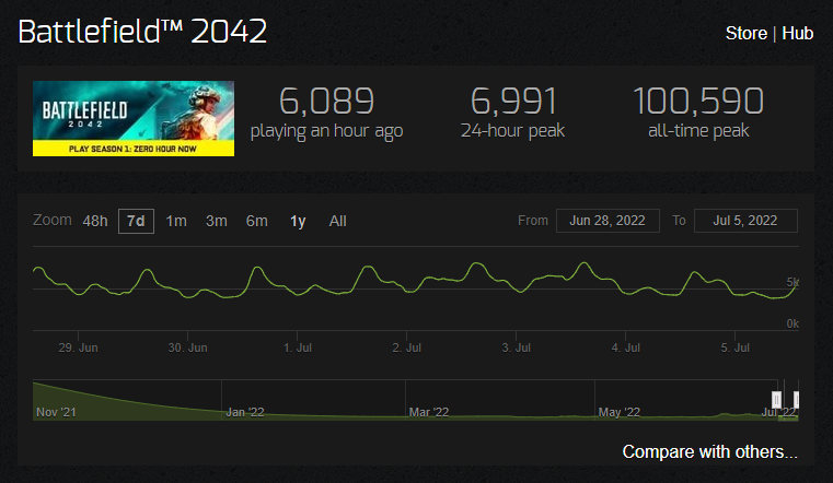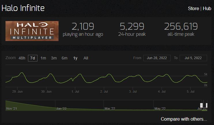 Журналист и инсайдер Том Хендерсон обратил внимание, что на днях провальная по многим пунктам и активно критикуемая игровым сообществом Battlefield 2042 обошла многопользовательский режим Halo Infinite по количеству одновременно активных игроков не в два, а сразу в три раза.