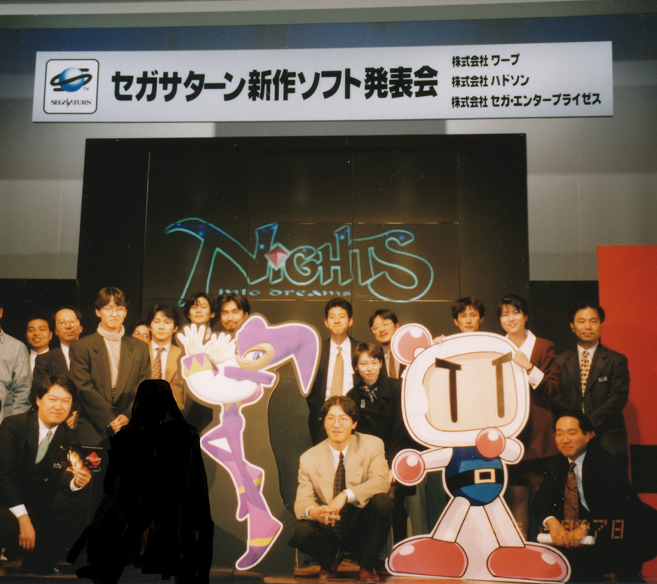 Юдзи отметил 26 лет с момента анонса Nights into Dreams для Sega Saturn. Внимание на фото привлекла фигура человека, которая, очевидно, замазана. Этим «замазанным» оказался Наото Осима (Naoto Ohshima), бывший коллега Юдзи.