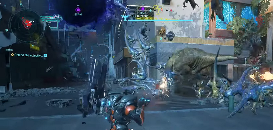 Начало вполне стандартное: создание персонажа и обучение, позволяющее спокойно разобраться с управлением и пострелять по тренировочным мишеням. Затем дают испытать арсенал способностей на живых целях и даже поуправлять крупным динозавром.