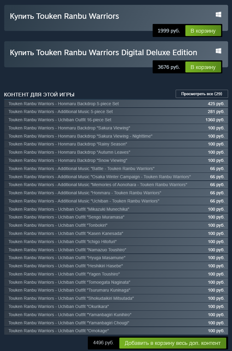 При этом выпущенная в конце мая 2022 года Touken Ranbu Warriors по-прежнему доступна для покупки, как и весь дополнительный контент для игры.
