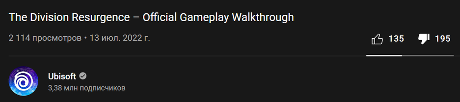 Дебютная геймплейная демонстрация понравилась далеко не всем. Дизлайков уже больше, чем лайков. Предыдущий ролик об игре в основном получил негативные оценки. Комментаторы высказывают мысль, что пора бы дать игрокам полноценную The Division 3.