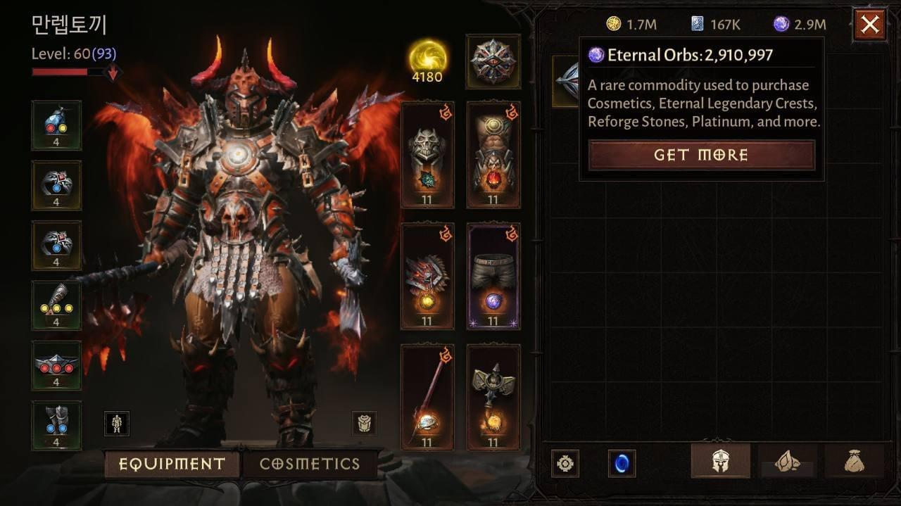 У него накоплено 2 910 977 Eternal Orbs, что в пересчёте на доллары, исходя из 100$ / 7200 EO, составит примерно 40,5 тысяч. Не учитывались уже сделанные инвестиции в прокачку.