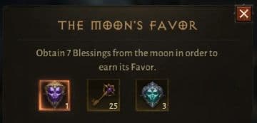 Приобретение любых семи Благословений гарантирует получение Милости луны, сундука с 1 легендарным глифом, 3 редкими глифами и 25 ключами претендента.