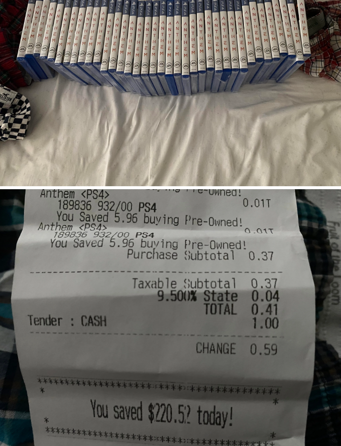 На форуме Reddit пользователь показал, как закупился: 37 копий Anthem он приобрёл за 37 центов.