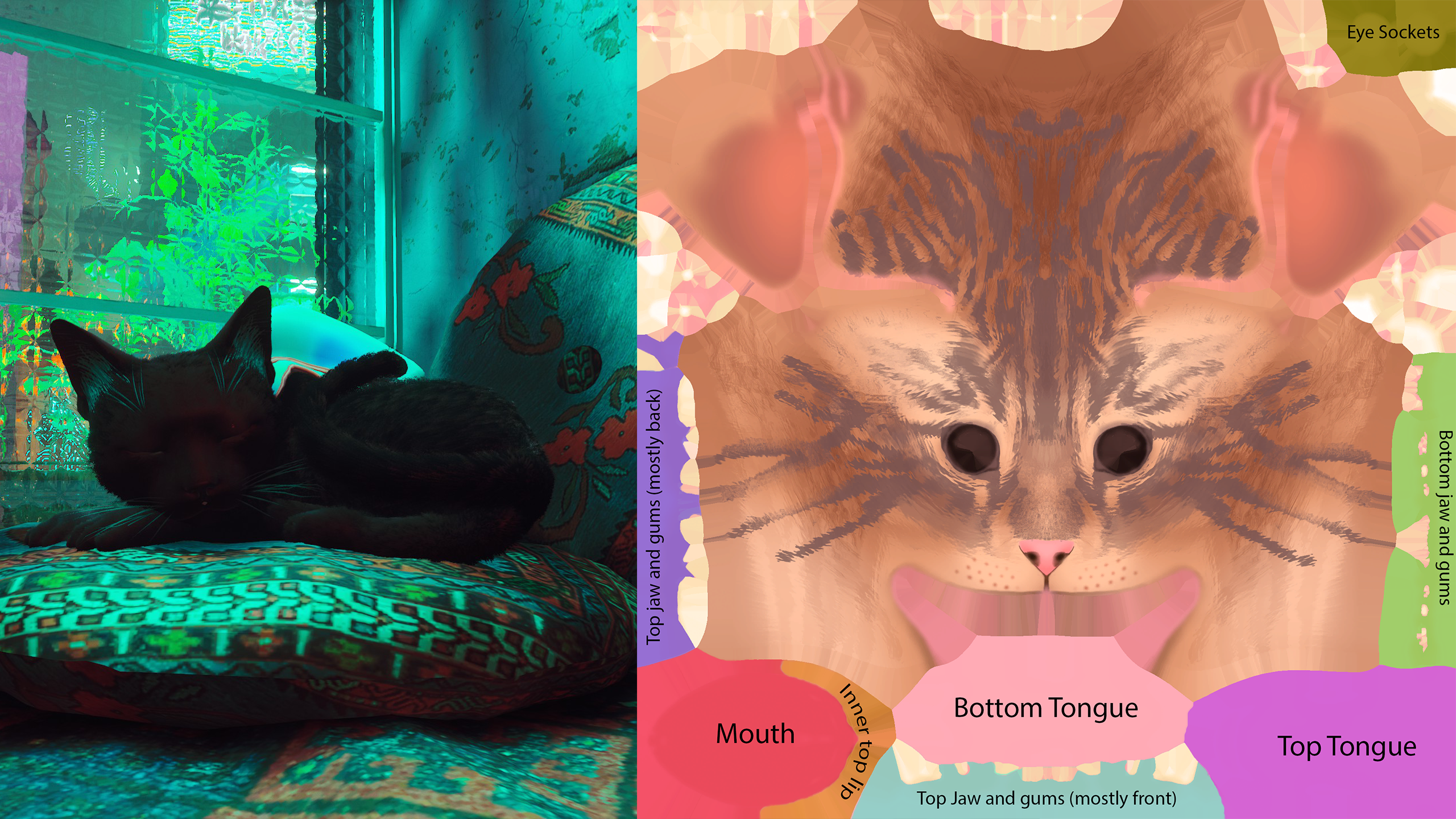 Стоит выделить модификацию с длинным названием Black Cat with darkened mouth and PSD templates (with zoned head). Она позволяет не только сделать героя чёрным, но и собрать собственного котика для игры в Stray.