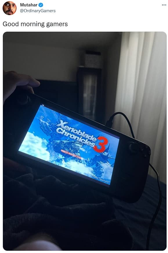 Блогер Mutahar опубликовал на своей странице в Twitter изображение, где он играет в Xenoblade Chronicles 3 за неделю до запуска на Steam Deck. Это говорит о том, что эмбарго было формальностью и подтверждает – в сети уже есть пиратская версия игры.