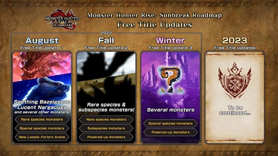 Кроме этого, Capcom составила дорожную карту на текущий год: новые монстры и виды появятся осенью и зимой. Также анонсирован новый, пока засекреченный контент на следующий год.