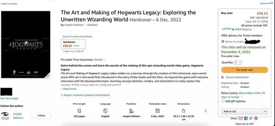 Британское подразделение Amazon ранее начало сбор предварительных заказов на артбук Hogwarts Legacy. Ожидалось, что продукт появится в 2022 году, но игроки начали получать электронные письма с конкретной датой.