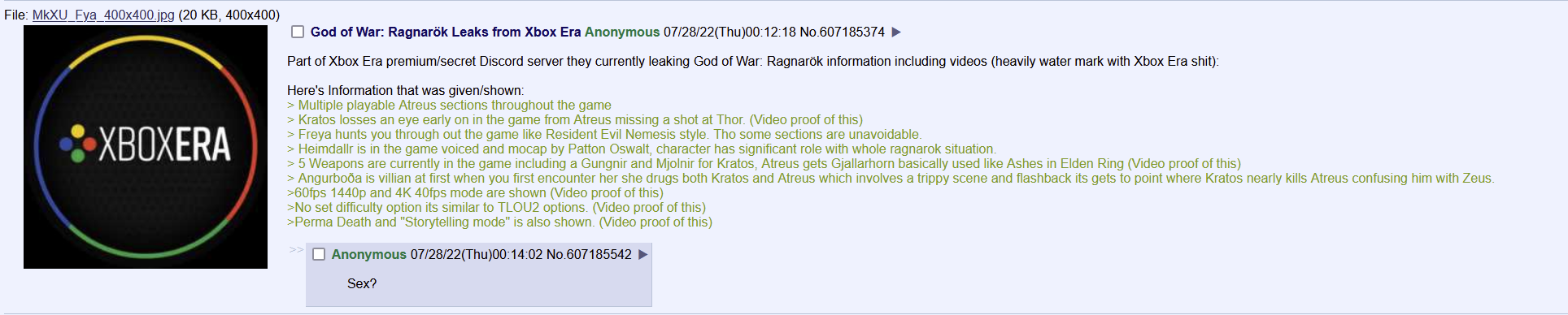 Он отреагировал, высмеяв происходящее (т.е. данная утечка, видимо, целиком фейк): «Теперь в моём собственном Discord-канале люди спрашивают, почему они не могут увидеть утечки о God of War, которые я всем показываю lololololololol».