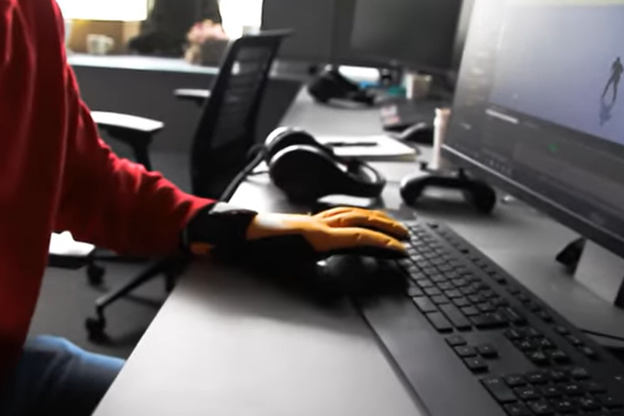 Есть и кадры рабочего процесса. Сначала разработчик надевает перчатки:
