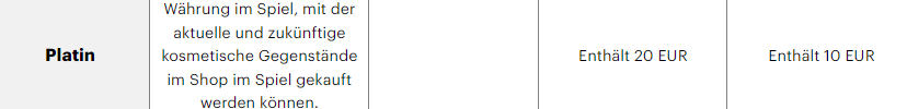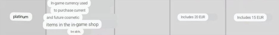 - Внутриигровая валюта «платина» для покупки косметических предметов во внутриигровом магазине.